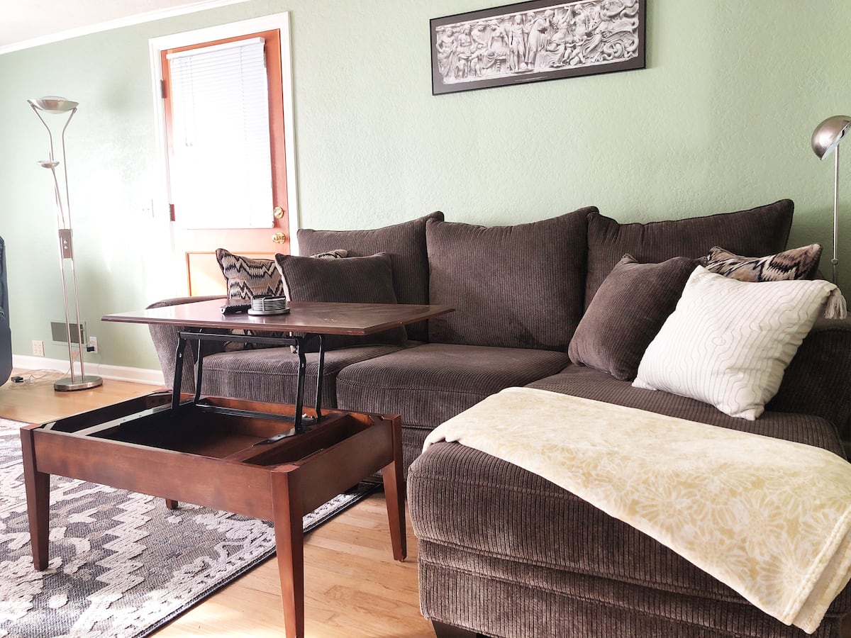 Minimal design, modest, kinda quirky. We created a 2-Bed, smaller option for smaller parties. Located in the historical neighborhood of Eugene, just blocks from Hayward Field, exploring and finding things to enjoy is made easy. Your family will be close to everything when you stay at this centrally-located place. There is a driveway for your car :) *Attached to our smaller studio Airbnb* - Ask about 1 night - We don’t use them, but feel free to request flat sheets for the beds if desired.
