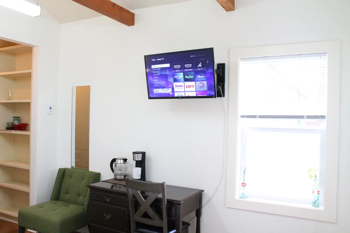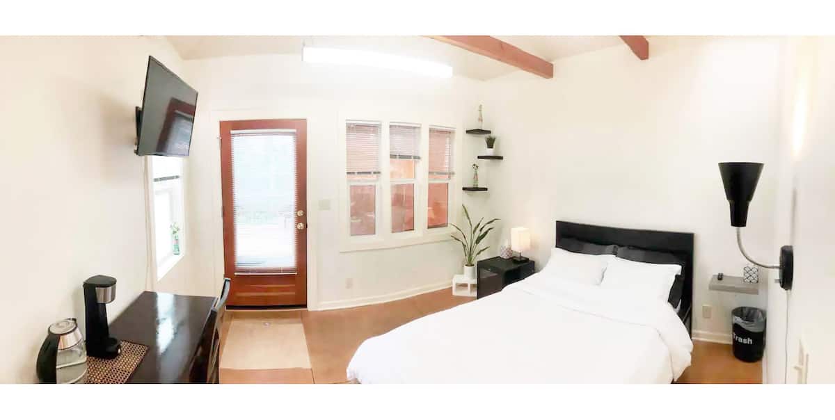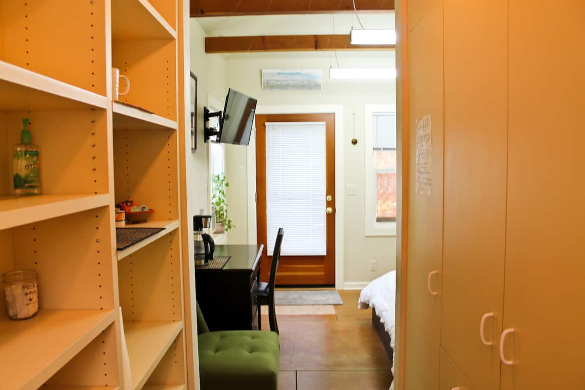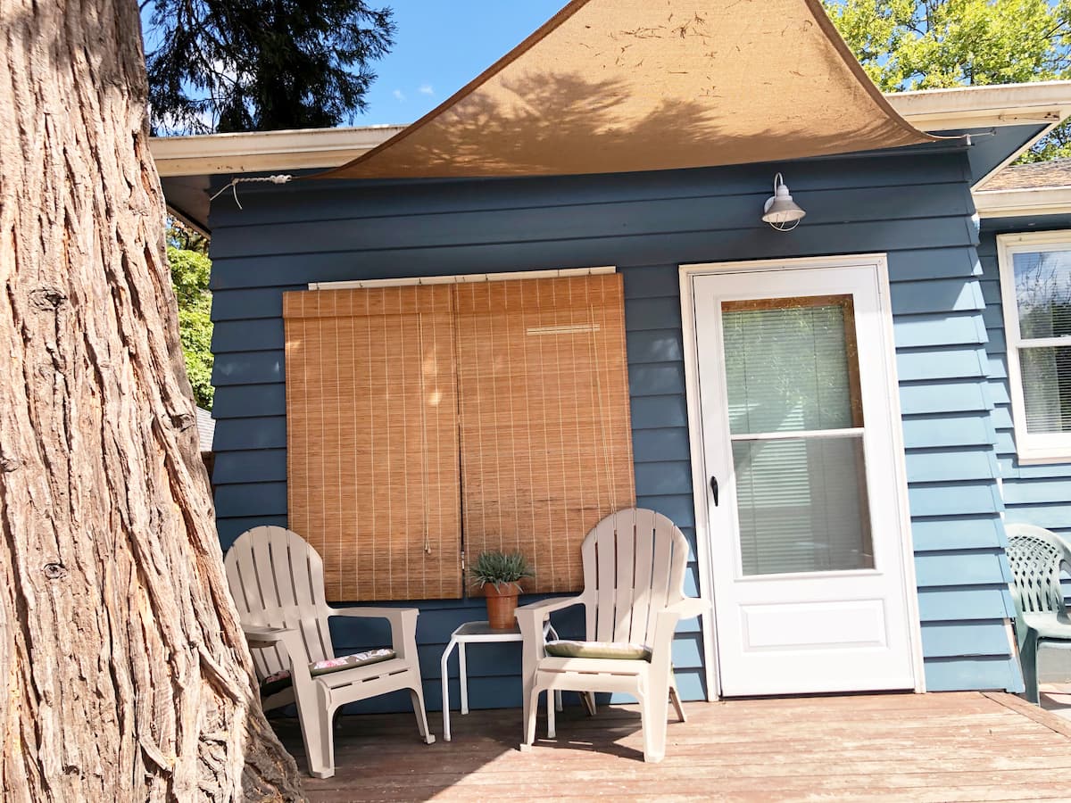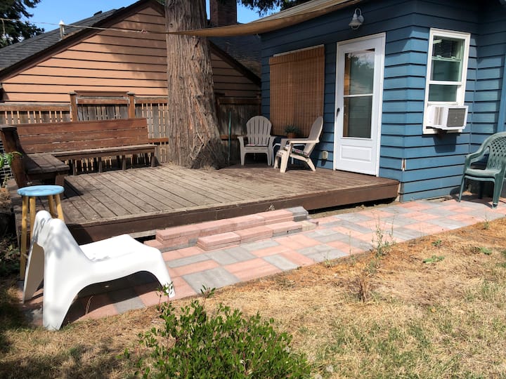 Enjoy Beautiful open space with lots of windows and access to your own private deck. Heated floors for the Eugene cold. A couple blocks from Hayward field and University campus in the Historical district of Eugene. This is an entire place with full bathroom and separate entrance. It adjoins our other Airbnb. Please note that there is no kitchenette, just a mini fridge, kettle and coffee :)